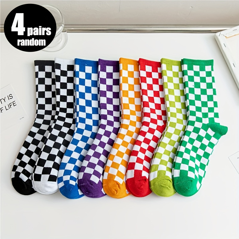 TEMU 여성을 위한 무작위 4 쌍의 양말, 중간 튜브 양말, 컬러 매칭 플레드 트렌디하고 패션적인 고가의 여성용 양말, 봄과 가을에 적합한 얇고 통기성이 좋은 습기를 흡수하는 양말, 스포츠 캐주얼 스타일 칼리지 스타일 우아한 여성용 중간 튜브 양말, 일상적인 사용에 적합합니다.