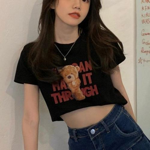 [엄지척]여성 캐주얼 귀여운 곰돌이 영문 프린팅 크롭 반팔티_19555483_667501