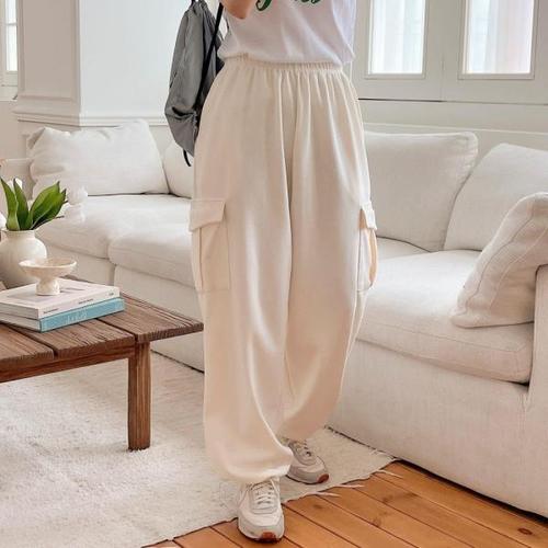 TEMU 캐주얼 롱 팬츠, 루즈핏 와이드 레그 캐주얼 바지, 신축성 있는 허리 밴드 스포츠 팬츠, 여성용 가을/겨울 외출용 따뜻한 탄성 허리 밴드 캐주얼 롱 팬츠