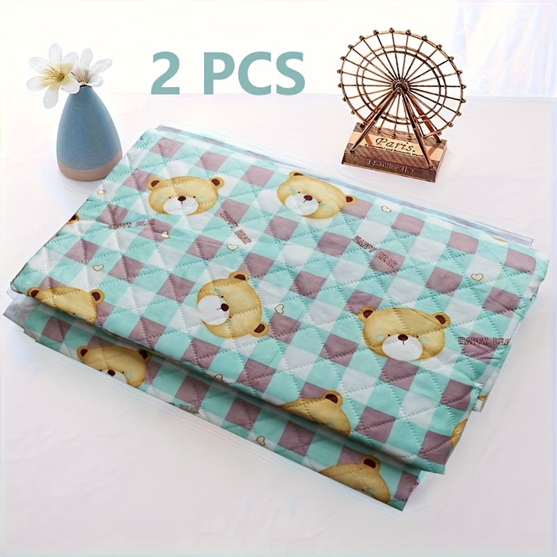 TEMU 2개 세트 대형 47x31인치 초소프트 기저귀 교체 패드 - 통기성, 세탁 가능 그린 & 핑크 카툰 베어 체크 디자인, 폴리에스터 충전 펫 매트 | 내구성 강한 방수 소재, 햄스터, 토끼, 기니피그, 다람쥐, 고양이, 개 및 파충류용 - 크리스마스, 할로윈, 추수감사절 선물 추천