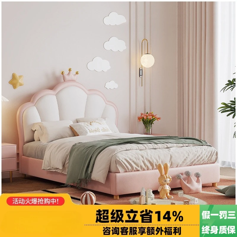 어린이 여자아이 침대 핑크색 여자아이 방 1.5미터 여자아이 침대 고급스러운 방오성 인터넷 유명 가죽 공주 소파