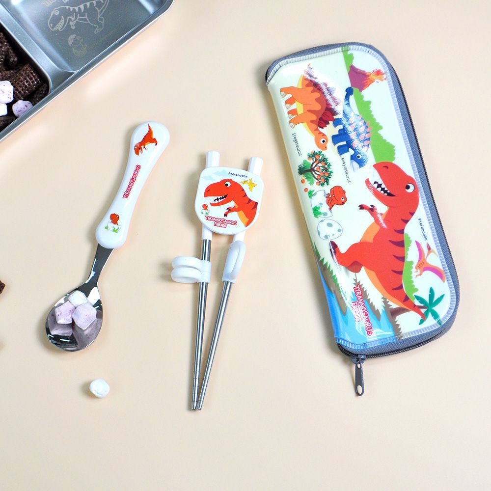 티라노 스텐304 편한스푼누들포크 1단계 젓가락 케이스세트 국내생산 공룡 수저세트