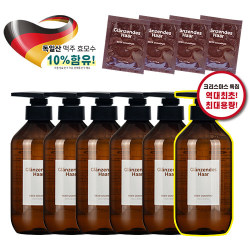 [초특가/글랜젠데스하르] 맥주효모 탈모샴푸 500mlx6개+무료체험 파우치 4매