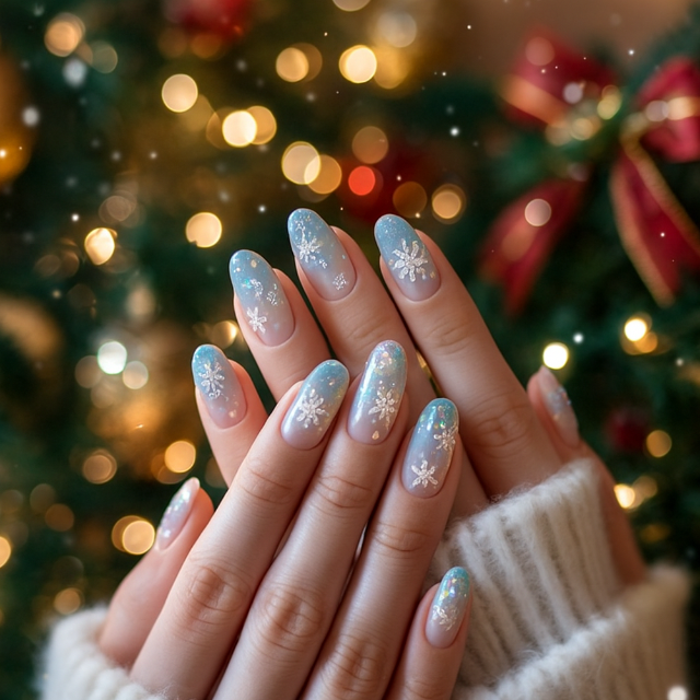 TEMU 전통 수제 네일 10개입, 시원한 블루 & 화이트 그라데이션 컬러 매칭, 패셔너블하고 우아한 나비, 순수한 욕망 펄, 모든 여성 및 데일리룩에 적합