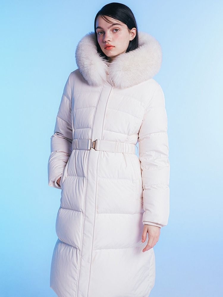 시슬리/애플아울렛/모나미 폭스퍼 벨티드 슬림 구스다운 롱 패딩 SAPD40361