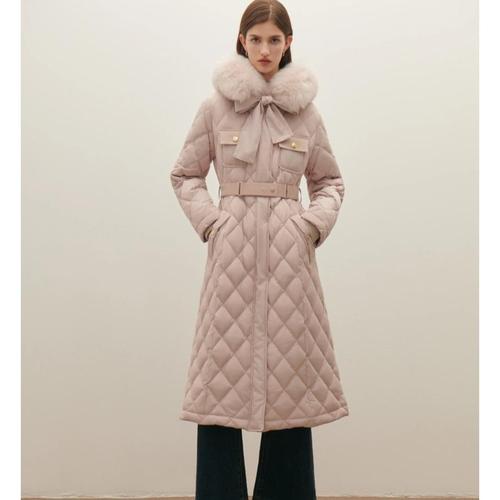 [샤틴]폭스퍼 후드넥 구스다운 벨티드 롱패딩S254M853A