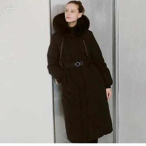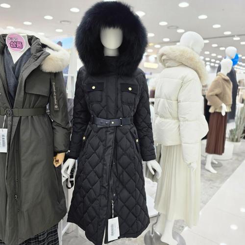 [샤틴]폭스퍼후드넥 탈착 구스다운 벨티드 롱패딩S254M854A64