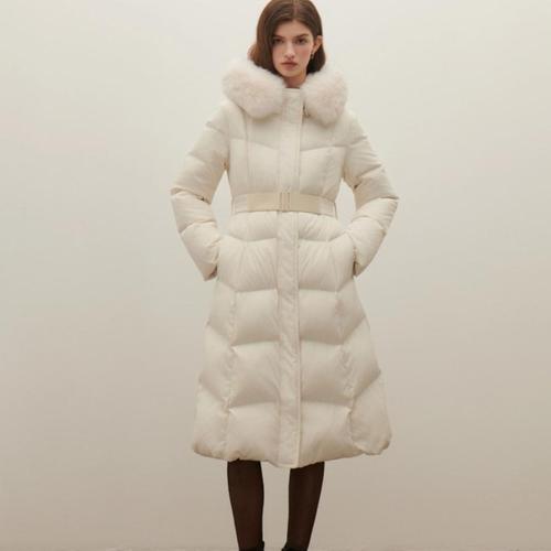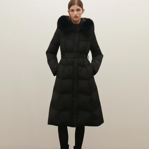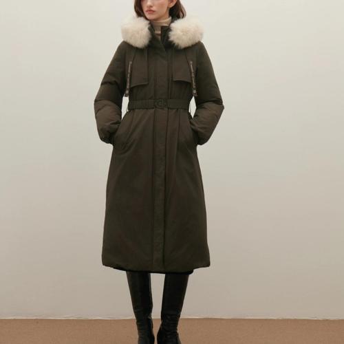 [샤틴]폭스퍼후드넥 탈착 구스다운 벨티드 롱패딩S254M854A26