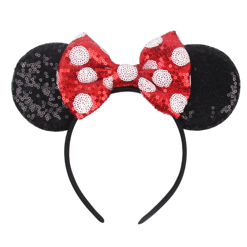 1pc 디즈니 미키 마우스 귀 머리띠 폴카 도트 스팽글 보우 귀여운 테마 공원 헤어 액세서리 선물 파티 머리띠 소녀 머리띠