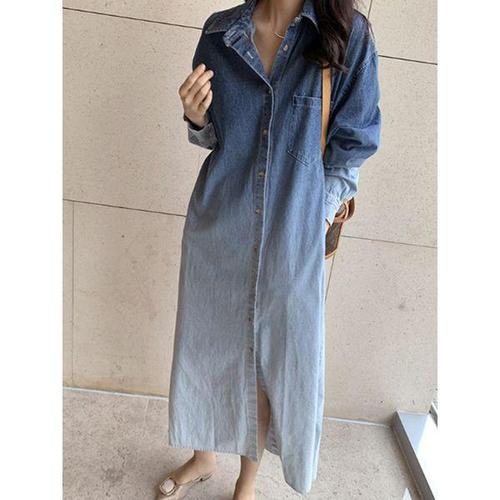[휴드]그라데이션 컬링 루즈핏 데님 원피스