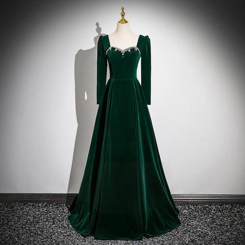 [교복몰]다크그린 롱슬리브 하트라인 벨벳 드레스 교복 학생