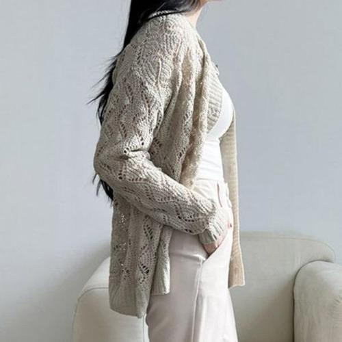 [엄지척]뽀얌 여자 그물 니트 긴팔 심플 베이직 가디건_19808230_667501