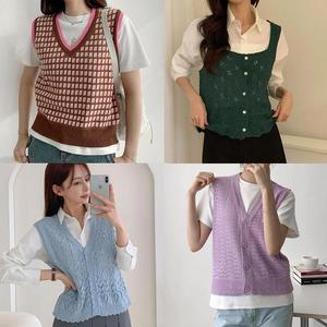 [셀러허브_여성트랜드패션]ONM 여성 6컬러 러블리 레이어드 뜨개 그물짜임 니트조끼