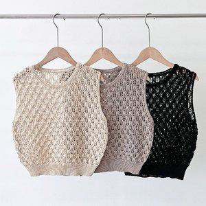 [셀러허브_여성트랜드패션]ONM 여름 니트 조끼 여성 크롭 펀칭 넷 그물 데일리
