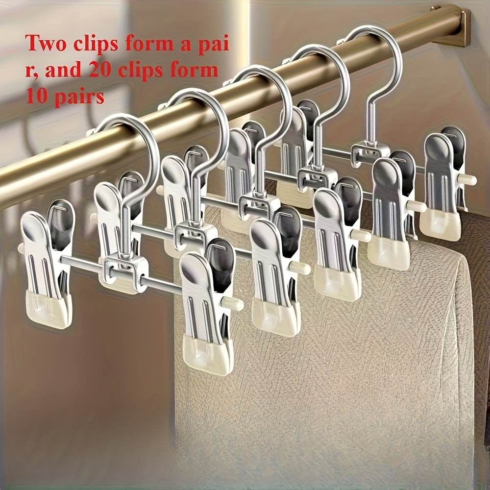 TEMU 스테인리스 스틸 더블 클립 행거 - 가정용 다목적 건조 및 세탁 후크, 사무실, 여행, 옷걸이, 금속 옷걸이, 수건, 장갑, 양말 보관, 빨래집게
