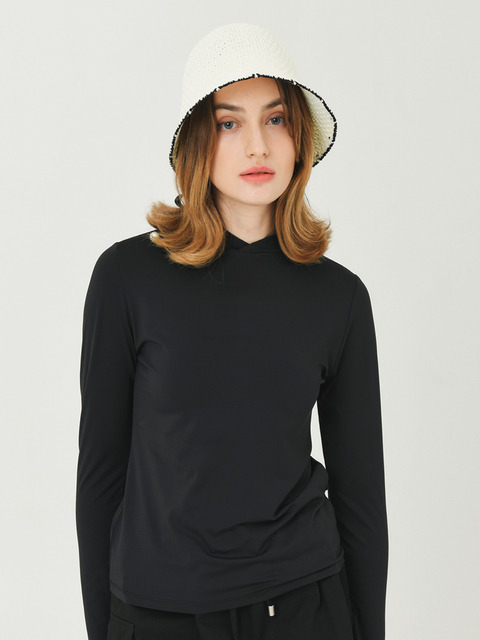 [두유노우엠씨] 25SS 기능성 냉감 소재 사선 모크 넥 블랙 긴팔 티셔츠