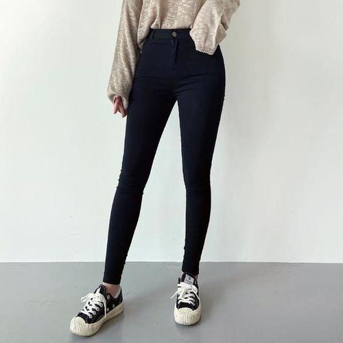 스키니진 여성 겨울 기모 청바지 슬림핏 팬츠 스키니 여자 하이웨스트 바지 블랙