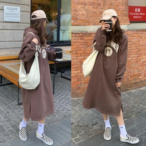 [셀러허브_여성트랜드패션]여자 롱원피스 데일리 기모 후드 겨울 루즈핏 안감