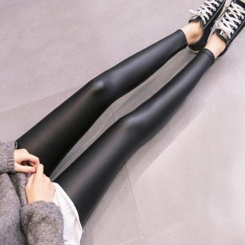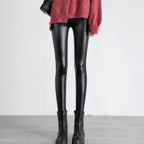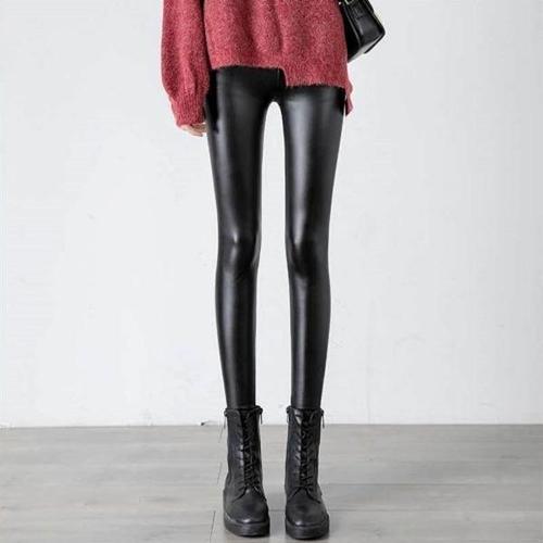 슬림소녀 여성 가을겨울 슬림핏 무광택 기모 스키니 가죽 바지