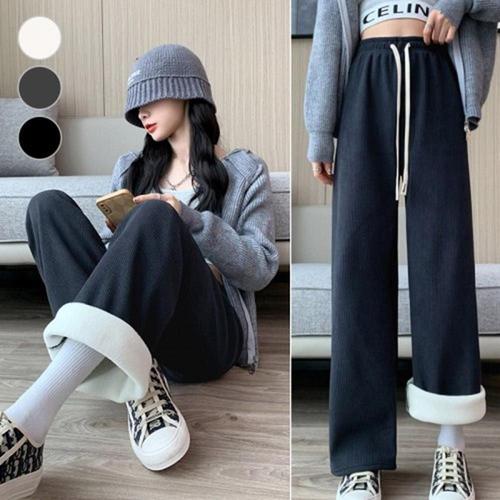 (완전 편한) 1+1 여성 기모 융털 코듀로이 방한 조거 팬츠 겨울 빅사이즈 두꺼운 양털 뽀글이 안감 골덴 작업복 배기 팬츠 외출 부드러운 통바지 밴드 보온 따뜻한 캐쥬얼 바지