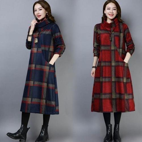 [유니제이] 렌디 터틀넥 니트 언발 롱 원피스/빅사이즈/기모/겨울원피스/빅사이즈
