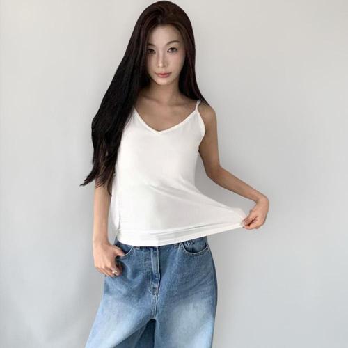 옷자락 / 여자 기본 이너 브이넥 민소매 끈 나시