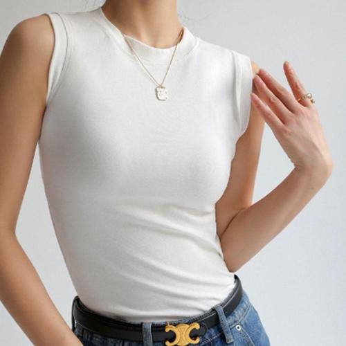 여성 신축성 좋은 기본스타일 라운드넥 민소매 티셔츠 WDE358A