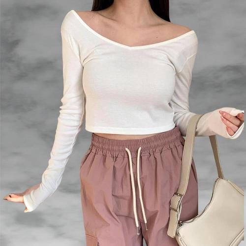 섹시한 얇은 긴 소매 오버 사이즈 T 셔츠를 통해 볼 여성 붕대 오프 숄더 탑 여성 기본 롱 티셔츠 Korean Chic Lady New