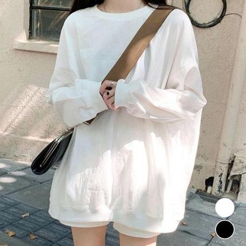 [엄지척]기본 무지 오버핏 여성 여자 학생 맨투맨 롱티셔츠_19557802_667501