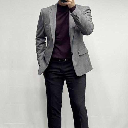 [바쏘옴므]25FW 기본핏 패턴 그레이 남성 모직 콤비 자켓 WSZ3-JK10-AGR