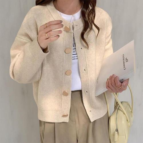 |CCJ6C50|여성 일상용 심플 기본 라운드넥 대형 버튼 가디건