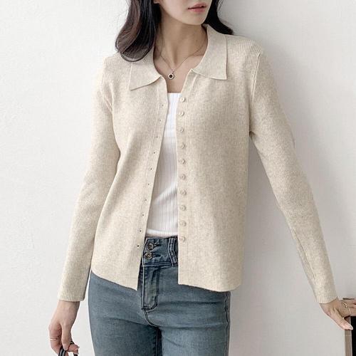 [미라클세븐]여성 기본 카라니트 버튼 긴팔 가디건 가을용 잔골지
