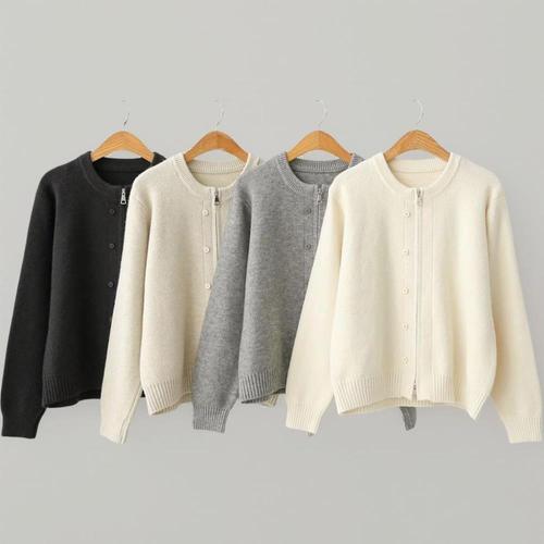 [미라클세븐]여성 버튼 두 가지 스타일 집업 라운드넥 기본 니트 가디건
