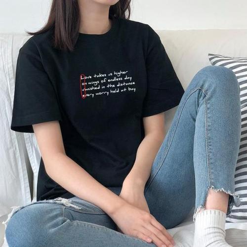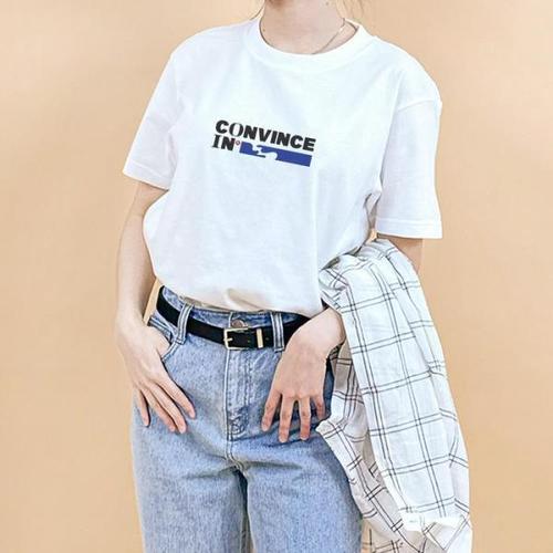여자 여름 레터링 반팔티 세미크롭 프린트 티셔츠 루즈핏 기본면티