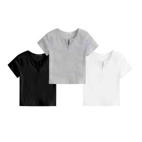 [에이치플러스몰]반팔티 배색 포인트 여성 기본 크롭 투톤