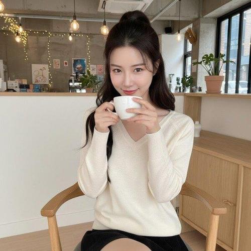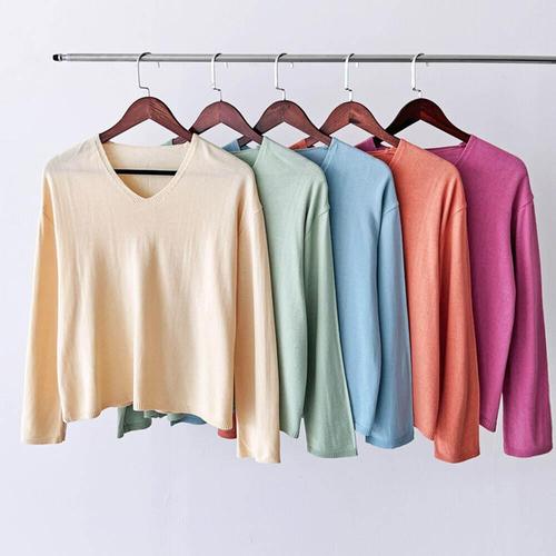 여성 기본핏 브이넥 데일리룩 비스코스 부드러운 긴팔 니트 Knitted T-shirt G262