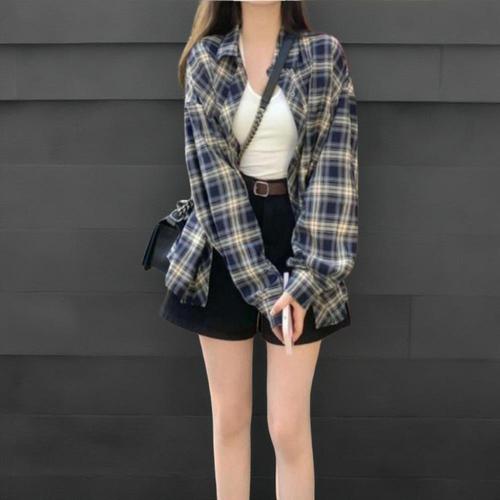[신상오픈런]여성 루즈핏 체크 셔츠 가을 데일리 기본 남방