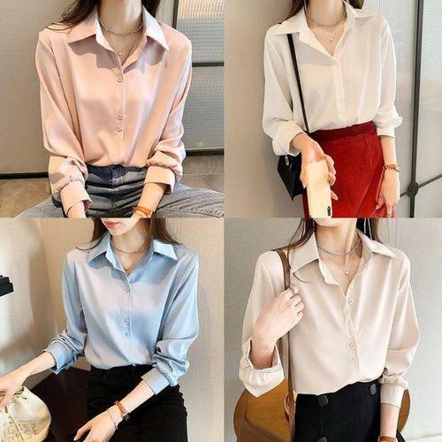 아이도스 여성 고급 패션 셔츠 새틴 쉬폰 긴팔 오피스 정장 블라우스 빅 사이즈 흰색