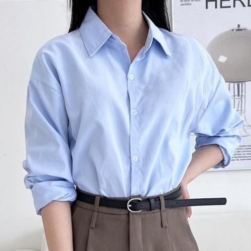 여성용 빅핏 긴팔 셔츠 블라우스 데일리 오피스 남방 기본 스타일 WFLMDMD