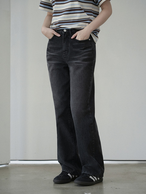 [와르 포 우먼] W52 롱 세미 부츠컷 데님 팬츠_블랙 [숏기장 추가]