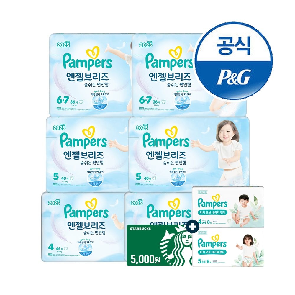 25 엔젤브리즈 팬티형기저귀 4단계 46매x6팩(2박스)+스타벅스 5천원+체험팩 2팩 증정