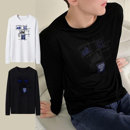남자 긴팔티 프린팅 오버핏 면티 흰티셔츠 기본티셔츠 라운드 WFNQJDG