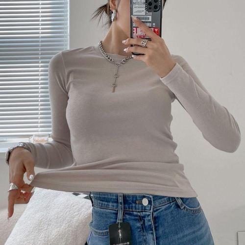 [옷자락] 여자 라운드넥 데일리 컬러 무지 긴팔 티셔츠