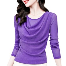 여성 글리터 펄 셔링 긴팔 라인 댄스복 라틴 재즈 밸리 줌바댄스 티셔츠 스포츠댄스복 상의, 퍼플