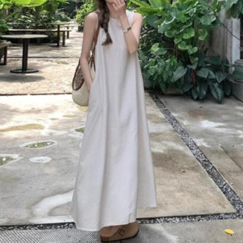[신상오픈런]|CCO571D|여성 여름 뒷트임 단색 민소매 A라인 롱 드레스_22388059_597559