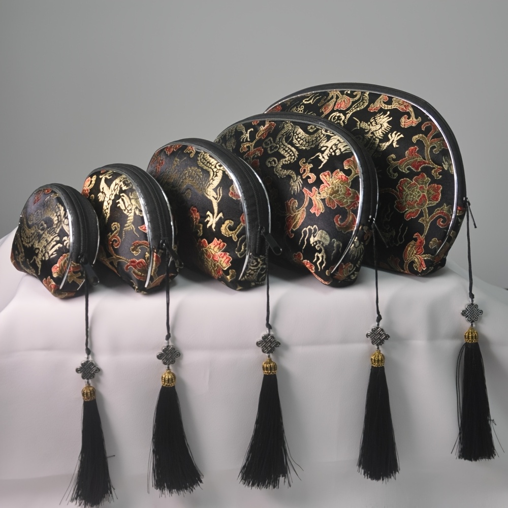 TEMU 중국 스타일 브로케이드 다섯 조각 세트 동전 지갑 휴대용 고대 메이크업 가방 열쇠 보관 가방 모바일 폰 보관 가방 자수 태슬 중국 매듭 여성 여행 선물 조합