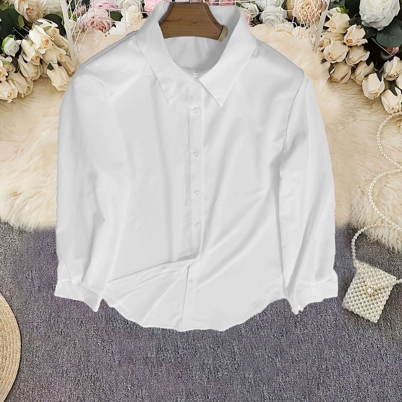 TEMU 여성용 우아한 캐주얼 긴팔 셔츠 - 클래식 칼라, 세미시스 솔리드 컬러, 봄 여름 가을용 기계세탁 가능, 롱슬리브 블라우스, 폴도버 칼라 디자인, 부드러운 소재의 시즌 패션 탑