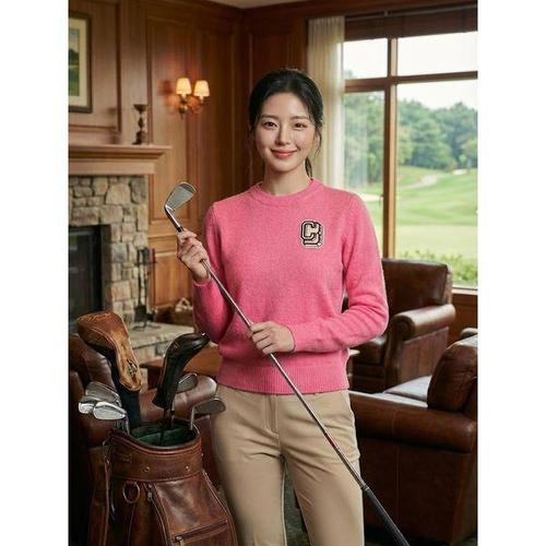 [까스텔바작]여성 모헤어 방풍 라운드 니트 핑크 BGBWSW701PI