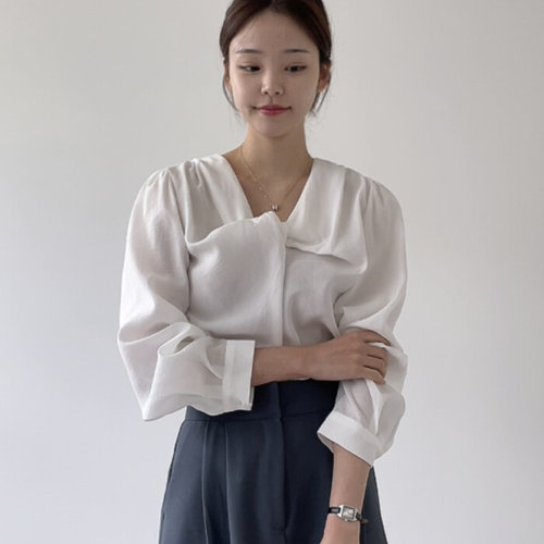 Destijl HC06 국내생산 꼬임 브이넥 깔끔한 기본 무지 블라우스 D2523bl02