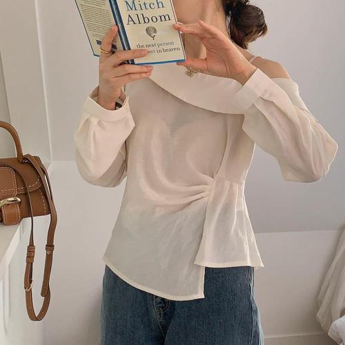 [옷자락]여자 원숄더 오프숄더 시스루 꼬임 가을 긴팔 블라우스